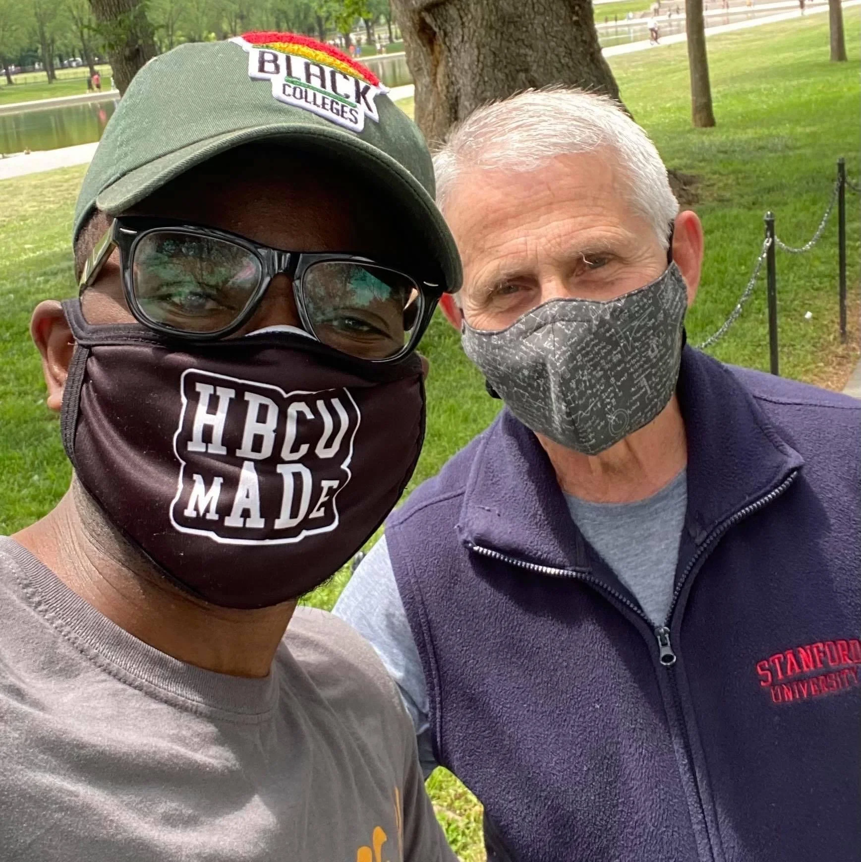 Isaiah Branton representing HBCUmADe while with Dr. Anthony Fauci. Courtesy of HBCUmADe105 Instagram